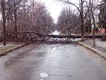 Досталось и Краматорску: ветер ломает и вырывает с корнем деревья, обрывает провода и бигборды, срывает шифер и козырьки с крыш домов.