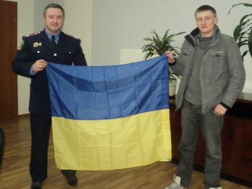 Сергей Григорьевич с благодарностью принял такой необычный подарок. Он заверил, что теперь официальный символ украинского государства, который, к слову, еще и побывал на блок посте в районе БЗС, будет под надежной охраной. Флаг сразу же был утсановлен на свое «старое» место – над входом в здание горотдела.
