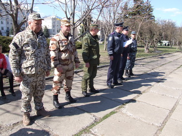 В Краматорске первая подобная церемония состоялась на центральной площади. До нарядов довели задания, напомнили о необходимости корректного общения с горожанами и раздали ориентировки на пропавшего несовершеннолетнего мальчика.