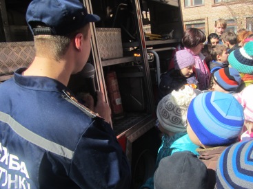 Централизованно выйдя во двор школы, дети были приятно удивлены: во дворе школы они увидели пожарный автомобиль. Представители Краматорского ГО ГСЧС еще раз напомнили детям о том, как правильно вести себя во время чрезвычайной ситуации, во время пожаров и артобстрелов. Кроме того, детвора смогла вживую посмотреть на настоящий пожарный автомобиль и даже посидеть за рулем.