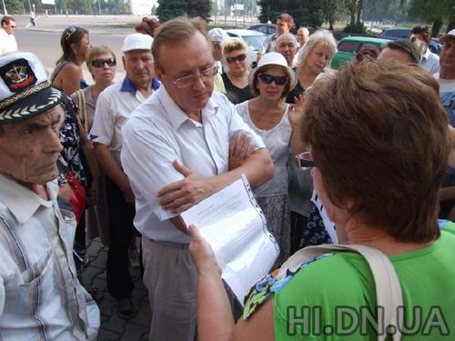 Общаться с пикетчиками вышел коммунальный заместитель городского головы Станислав Захаров