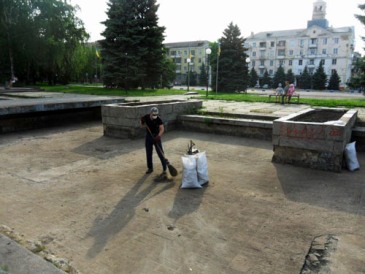 Житель Краматорска Илья Андреев провел в течение нескольких последних дней любопытный трудовой эксперимент: своими силами и личным инвентарем почистил емкости бывших фонтанов в самом центре города, которые превратились в последнее время в мусоросборники, сообщает "ОбщеЖитие"
