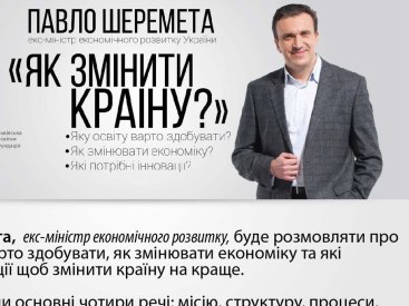 Завтра на базе молодежной платформы "ВІЛЬна ХАта" в 16:00 состоится встреча с украинским экономистом, экс-министром экономического развития Украины, основателем Киево-Могилянской бизнес-школы (KMBS), бывшим президентом Киевской школы экономики Павлом Шеремета