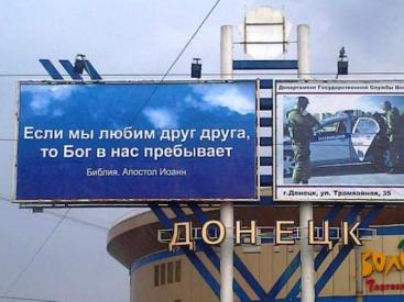 На круглом столе в Краматорске приняли решение размещать в городах Донетчины билборды с цитатами из Библии. Кто откажется от установки таких рекламных щитов — будут приглашены на беседу в облгосадминистрацию.