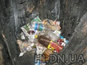 Внутри ствола находится различный мусор: бутылки, бумажные обертки и стаканчики