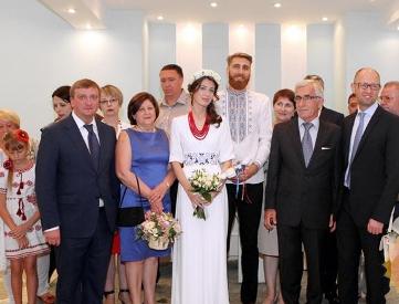 Отмечается, что глава правительства и Министр юстиции Павел Петренко посетили церемонию бракосочетания пары, которая первой подала он-лайн заявку на регистрацию. Молодоженами стали: краматорчанин Павел и уроженка Мариуполя Инна, которые познакомились во Львове. Арсений Яценюк лично поздравил молодых, и заметил, что у них «историческая» свадьба, так как заявление было подано в виртуальном режиме, что говорит о развитии технического прогресса в Украине. Новоиспеченный жених говорит, что вся процедура проходит очень быстро и просто, а главное – без бюрократической волокиты.
