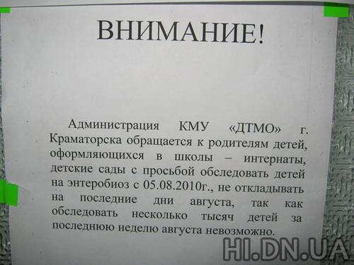 «В течение месяца мы постоянно давали сообщения с просьбой не откладывать сдачу анализов на последние дни августа на радио и в прессе, такое объявление висит у нас в поликлинике возле регистратуры. Но мамочки, не слушая наших предупреждений, все равно ведут своих детей сдавать анализы в последний момент, - говорит Алла Лаврова. - Перед Днем независимости у нас были рабочие суббота и понедельник. При этом посетителей практически не было, все отдыхали. Зачем откладывать посещение поликлиники на последние дни августа? Анализ на энтеробиоз годен в течение месяца!».