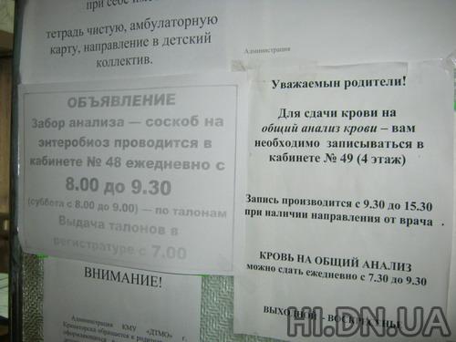 Чтобы ребенок сдал анализ, очередь в детской поликлинике Краматорска приходится занимать ночью