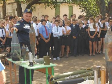 Так 8 сентября специалисты ДСНС совместно с группой пиротехнических работ аварийно-спасательной части аварийно-спасательного отряда специального назначения Главного управления ДСНС в Донецкой области и сотрудниками сектора криминальной милиции по делам детей посетили СОШ № 22 Краматорска.
