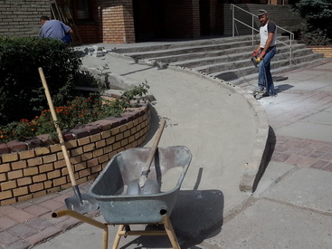Строительством пандуса для людей с ограниченными возможностями у входа в библиотеку им. Горького занялись Клуб предпринимателей Краматорска и завод ДОНМЕТ. За помощью в установке пандуса к директору завода Владимиру Сергиенко обратилась директор библиотеки Елена Григорьевна Помаз