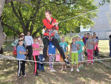 Чтобы рассказать и показать наглядно то, чему могут научиться будущие воспитанники, для посетителей были организованы туристско-краеведческие станции. Любители активного отдыха успешно прошли дистанцию по маршруту с картой на станциях спортивное ориентирование «Лабиринт» и «Азимут». На станции «Юный турист» состоялись показательные выступления кружковцев (Пушкарук О., Сафронов Е., Кравченко Д.) по спортивному туризму – ребятами были продемонстрированы технические приемы: «Траверс склона», «Спуск способом Дюльфера», «Крутонаклонная переправа вверх». За считанные секунды спортсмены взмывали на высоту до 4 метров, поражая зрителей техничностью и слаженностью действий. Гости, наблюдавшие за мастерством воспитанников, также попробовали свои силы на этапах: «Маятник», «Переправа по параллельным перилам», «Преодоление условного болота по кочкам и жердям». Самые «заядлые» туристы могли сыграть в игру «Собери рюкзак» и «Туристическая кухня». На станции «Узлы» ребята попробовали вязание простых узлов, которые помогают решить большинство задач, возникающих в туристических походах.