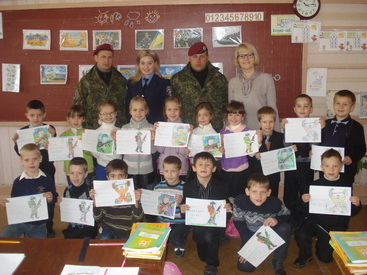 Первоклассники с благодарностью встретили правоохранителей, а в конце встречи преподнесли им трогательные подарки - свои рисунки защитникам Украины с благодарностью за их работу.