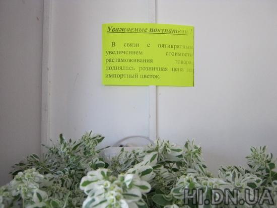 В связи с повышением таможенной пошлины, цены у краматорских «цветочников» выросли только на импортные цветы, об этом продавцы предупреждают с помощью объявлений. Цены же на наши, украинские, цветы не изменились даже накануне 1 сентября.