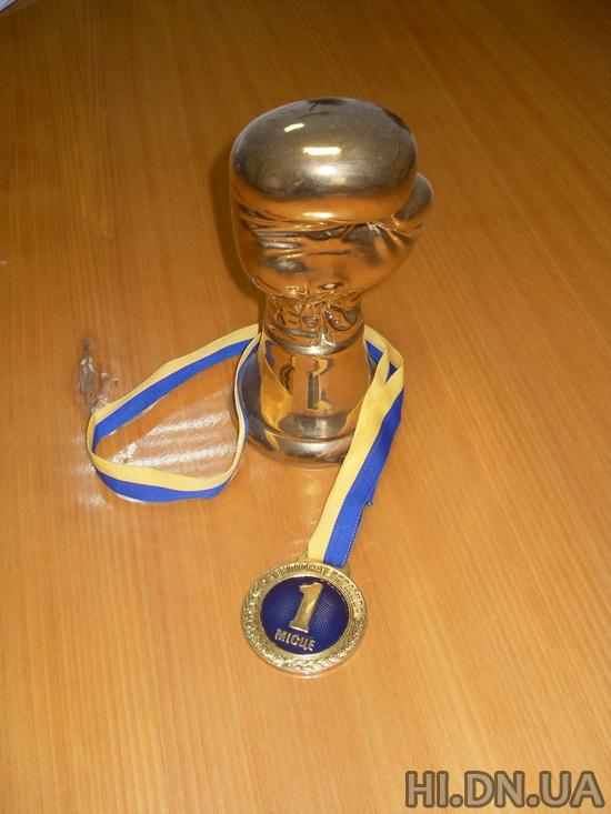 Антон Артюхов подарил школе кубок и медаль чемпиона Украины по боксу