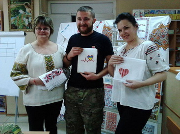 Мастера вышивания крестиком поделились своим умением с вынужденными переселенцами из Донбасса. Гостями на этом мероприятии стали представители "ВСУ " Донецка, которым волонтеры в память об акции подарили вышитые сувениры.