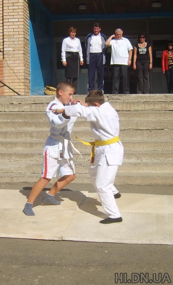 Перед школьниками выступил мастер спорта СССР по футболу, игрок футбольных команд «Динамо» (Москва) и «Кайрат» (Алма -Ата) и тренер футбольного кружка Владимир Нехтий. Кстати, в школе сильны спортивные традиции: директор школы Леонид Шевченко является членом Федерации футбола и председателем шахматной Федерации Краматорска; учитель начальных классов Наталья Лисеенко признана лучшим волейболистом, а учитель истории – Оксана Щепоткина – лучшим баскетболистом в спартакиаде среди учителей школ нашего города.
