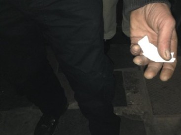 Мужчина достал из кармана два газетных свертка, в которых находилось измельченное вещество растительного происхождения с характерным запахом конопли, а также предмет, внешне похожий на кастет.