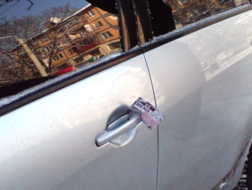 Вчера агрессивной рекламе подверглись практически все автомобили, припаркованные вдоль улицы Социалистической. Каждый автовладелец получил приглашение "на массаж", пишет "Технополис".