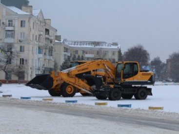 На центральной площади Краматорска выстроилась новая техника для уборки улиц.