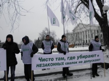 На тематическом митинге активисты-экологи выступали за раздельный сбор мусора и отходов, за сохранение зеленых насаждений.