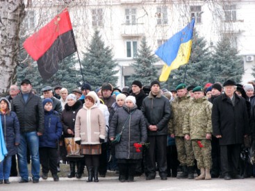Почтить память героев Майдана собрались представители общественности, учебных заведений и предприятий, духовенство; присутствовал губернатор Донецкой области Павел Жебривский.