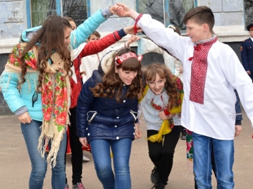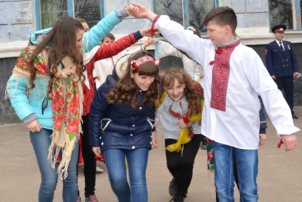 Большинство ребят были одеты в национальные украинские наряды. Поэтому, невзирая на пасмурную погоду, настроение у всех было праздничным и солнечным, благодаря обилию ярких красок.