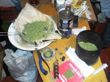 Еще одним любителем травки оказался 43-летний мужчина, ранее не имевший судимостей. Наркотики он хранил в гараже и в летней кухне. Некоторое количество марихуаны краматорчанин хранил в 5-литровой банке. Всего у мужчины обнаружили с пол килограмма наркотического вещества.