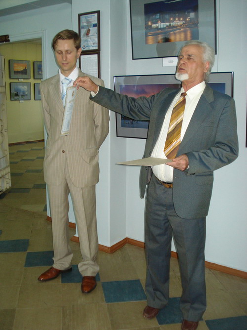 Юрий Голыгин вручает Дмитрию Алимкину диплом фотоклуба