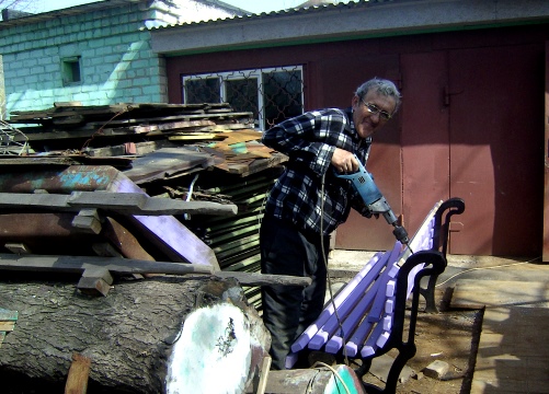 Работники парка – мастера на все руки. На наших глазах Алексей Степанович, которого директор назвал «специалистом широкого профиля», превратил сломанную скамейку в новую. А Петр Николаевич и Сергей Иванович занимались не менее важным делом – обновлением крыши на необходимом, время от времени, всем нам объекте. Дамы подметали территорию.