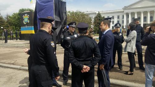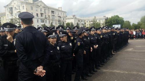 На главной площади Краматорска все в ожидании Президента Петра Порошенко. Городской голова Андрей Панков и народный депутат Украины Максим Ефимов в это время общаются с будущими полицейскими. Министр МВД Арсен Аваков также находится на площади - сообщает "Восточный проект"