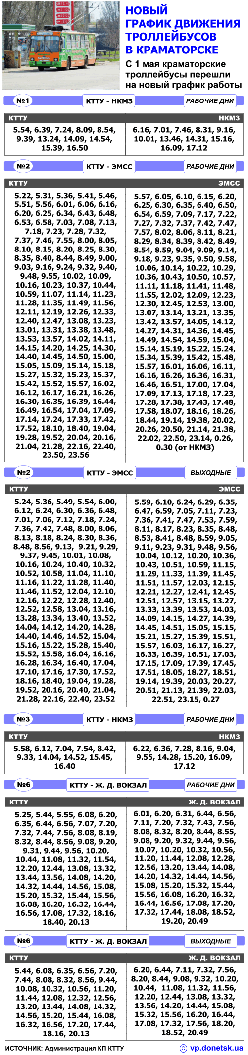 График движения троллейбусов Краматорска (ИНФОГРАФИКА + СХЕМА)