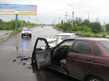 Вчера перед путепроводом на Новом Свете в Краматорске (около Артемовского пеезда) совершили лобовое столковение два автомобиля марки ВАЗ- 2110. «Десятка» красного цвета вылетела на полосу встречного движения, столкнувшись с автомобилем такой же марки, только серебристого цвета.