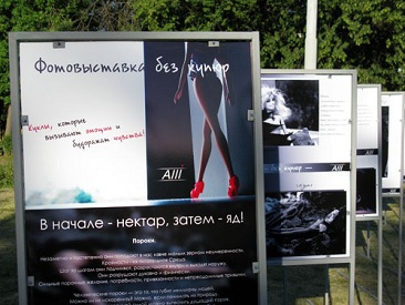 В центре Краматорска, рядом с фонтаном в Сквере профсоюзов, открылась фотовыставка под названием "Без купюр", главными "действующими лицами" которой выступают куклы, а предметом исследования - человеческие пороки.