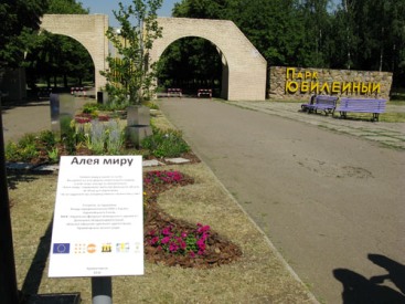 Утром 13 июля у входа в краматорский парк "Юбилейный" (со стороны одноименной улицы) открылась "Аллея мира" - символический ансамбль, сочетающий в себе живые деревья и сталь.