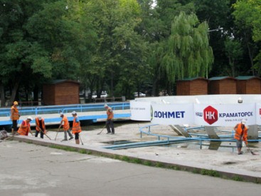 Сегодня, 29 июля, бригада рабочих Управления ЖКХ приступила к очистке чаши центрального фонтана в Сквере профсоюзов Краматорска.
