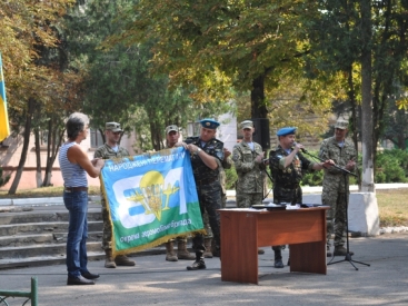 Ветераны вручили младшим товарищам знамя, специально изготовленное для 81-й бригады,и пожелали им мирного и чистого неба.