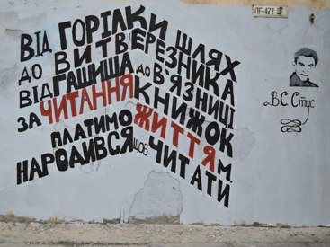 По переименованной улице, в честь украинского поэта, диссидента, автора многочисленных стихов и ряда критических статей политзаключенного Василя Стуса появилось необычное граффити.