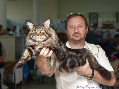 и краматорский мэйн кун черного мраморного окраса по кличке Цезарь (заводчик Ковалев Сергей). Этот же мейн кун получил приз зрительских симпатий.