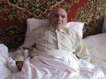 Сейчас Михаилу Гордеевичу 90 лет. Он прикован к постели из-за того, что ноги старика перестали работать после инсульта. После инсульта мужчину положили в урологическое отделение краматорской больницы №2 с диагнозом «Камень в мочевом пузыре размером 2,5 см». Врачи отделения утверждают, что в таком возрасте делать операцию опасно. Поэтому единственным выходом является замена катетера каждый месяц.