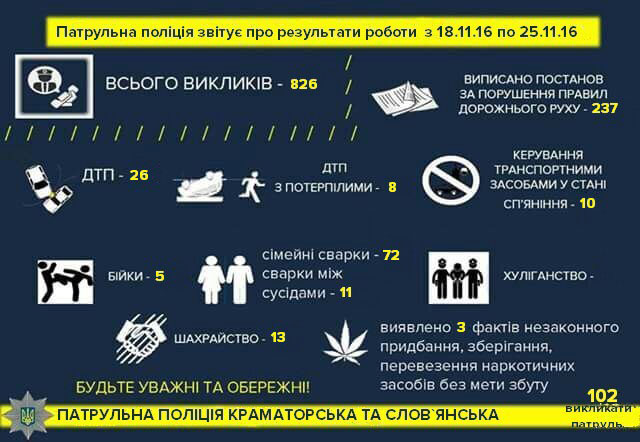 Патрульная полиция Краматорска им Славянска представила инфографику о проделанной работе с 18 по 15 ноября.