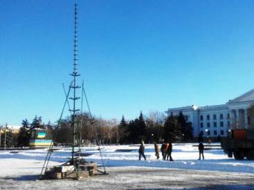 На центральной площади Краматорска начали устанавливать новогоднюю елку