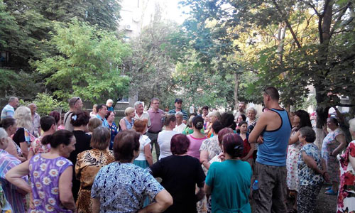 Представитель общественности Олег Ботвинов заявил, что делегирован жителями дома № 30 по б. Краматорскому и домов №№ 27, 29, 31 и 33 по улице Н. Курченко, и что все эти люди по-прежнему против строительства амбулатории в их дворе.