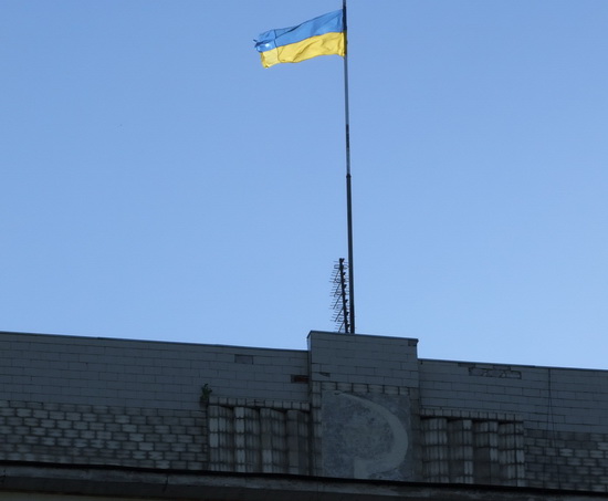В Краматорске весь день 13 октября флаг над зданием исполкома развевался на самой макушке флагштока.