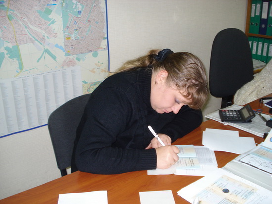 Специалист отдела по делам семьи и молодежи выписывает новые удостоверения.