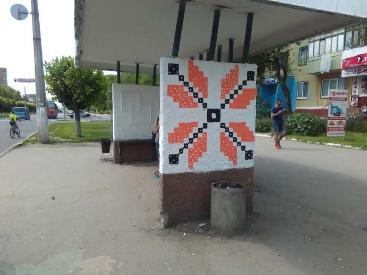 Волонтеры украсили остановку орнаментом и рисунком львовской художницы