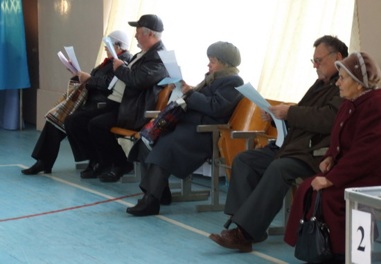 Многие старики начинают изучать бюллетени еще в очереди перед кабинками