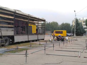 Для проведения концерта в День Независимости на центральной площади Краматорска начали установку сцены. - сообщает "Восточный проект"