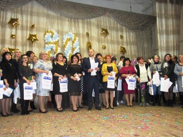 В адрес школы и ее коллектива было сказано много теплых слов. А каждый подарок был настоящим сюрпризом. Горсовет и управление образования подарили школе оргтехнику. А начальник управления образования Марина Мозолева дополнила подарок еще и Почетными грамотами работникам школы. Марина Мозолева отметила, что раз зал полон, значит, у школы есть много поклонников и друзей, которые любят это учебное заведение.