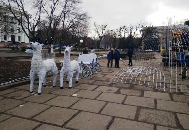Коммунальники установили оленей и сани Санты, которые будут подсвечиваться в вечернее время. У краматорчан это украшение пользовалось большой популярностью – многие делали в нем фото. Впрочем, через время в горсовете заявили, что неаккуратное обращение с новогодним украшением сделало его опасным для жизни. Для того, чтобы ограничить доступ было установлено ограждение и предупреждающие таблички.