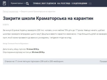 В рекордные сроки - за полтора суток - в Краматорске собрала необходимое количество подписей официальная петиция с требованием закрыть городские школы на карантин.